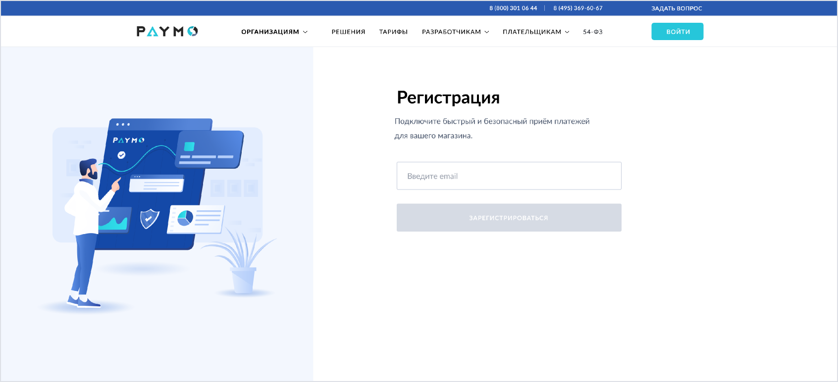 Для регистрации интернет-магазина нажмите на кнопку «Войти»,